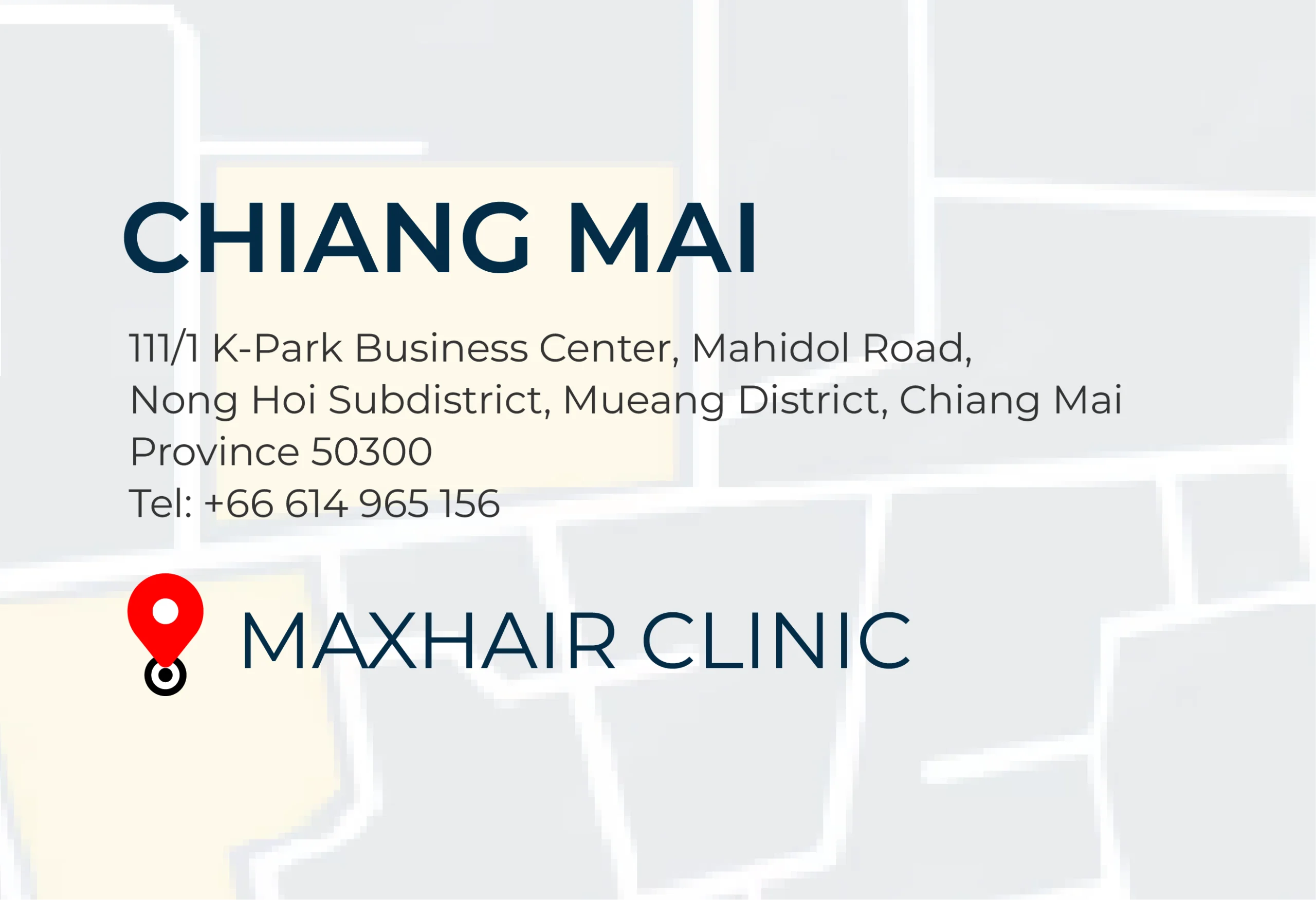 Look up on Google Map111/1 K-Park Business Center, Mahidol Road, Nong Hoi Subdistrict, Mueang District, Chiang Mai Province 50300